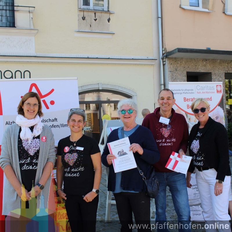 Im Rahmen der 5. Bayerischen Demenzwoche konnten die Mitwirkenden der Arbeitsgruppe „Demenzfreundliche Stadt Pfaffenhofen“ am Aktionstag vergangene Woche zahlreiche Interessierte begrüßen. Am vergangenen Samstag war Welt-Alzheimertag und so konnten sich Besucherinnen und Besucher an einem Stand am Wochenmarkt über die Beratungs- und Unterstützungsmöglichkeiten informieren.