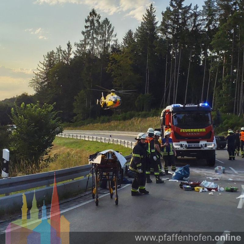 Ein Motorradfahrer war laut Polizeibericht anscheinend ohne Fremdbeteiligung gestürzt und in der Folge unter einen entgegenkommenden PKW geraten. Die Feuerwehr Tegernbach befreite den Schwerstverletzten schnellstmöglich. Die ebenfalls alarmierten Feuerwehren aus Pfaffenhofen und Ehrenberg unterstützen den Rettungsdienst bei der intensiven Rettung und Betreuung und luden den Motorradfahrer in den Rettungshubschrauber.