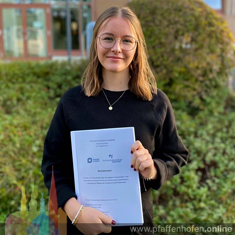 Pfaffenhofen, 07.10.2024 – Die Ilmtalklinik gratuliert Mitarbeiterin Eva Kiesenbauer zu ihrem herausragenden Studienabschluss.