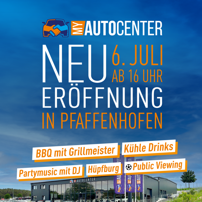 Am 6. Juli feiert „MyAutocenter“ die offizielle Eröffnung seines neuen Standorts im Gewerbegebiet am Kuglhof in Pfaffenhofen. Das Unternehmen, unter der Leitung von Temel Yildirim, bietet nun auf über 1000 Quadratmetern Ausstellungsfläche eine große Auswahl an qualitätsgeprüften Gebrauchtfahrzeugen verschiedener Marken und Modelle. Zur Feier des Tages gibt es ein BBQ mit Grillmeister, kühle Drinks, Partymusik mit DJ, eine Hüpfburg und Public Viewing.