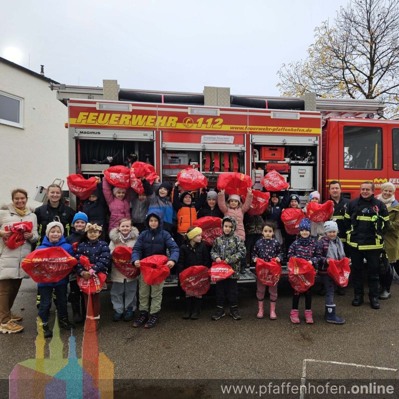 Mit einer besonderen Aktion sorgte die Feuerwehr Pfaffenhofen auch in diesem Jahr wieder für leuchtende Kinderaugen in den städtischen Grundschulen. Für alle in der ersten Jahrgangsstufe gab es praktische Schutzhüllen für die Schulranzen als kleine Überraschung.