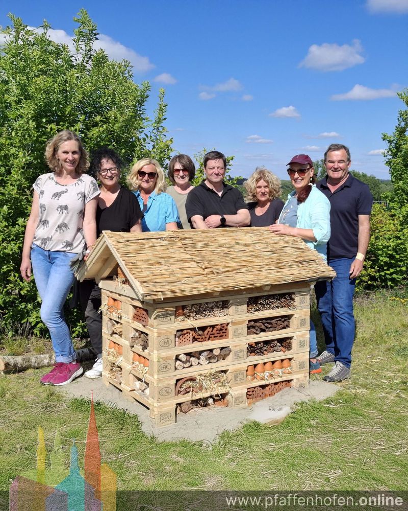 Freizeit einem sozialen Zweck gewidmet und im Blühgarten des Kindergartens „Storchennest“ in Pörnbach ein Insektenhotel gebaut. Voller Eifer wurden dafür einen Nachmittag lang Paletten