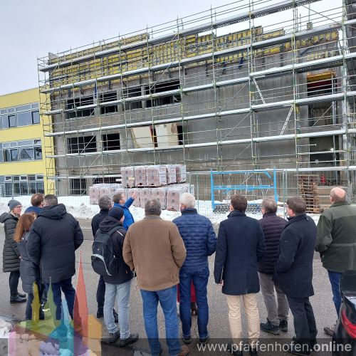 Mit den Arbeiten beim Neubau der Realschule Geisenfeld liegt man sehr gut im Zeitplan. Davon konnten sich die Mitglieder des Bau- und Vergabeausschusses im Vorfeld ihrer letzten Sitzung bei einer kurzen Besichtigung der Baustelle überzeugen.