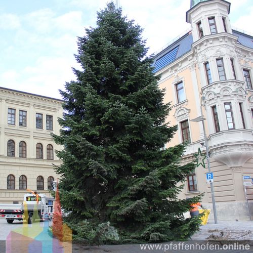Christbaum auf dem Oberen Hauptplatz aufgestellt