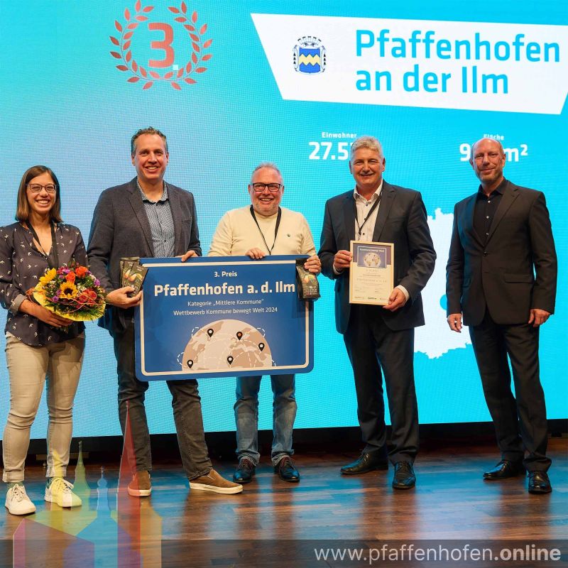 Die Stadt Pfaffenhofen hat beim Wettbewerb „Kommune bewegt Welt“ den dritten Platz in der Kategorie mittelgroße Städte belegt. Die Auszeichnung würdigt das entwicklungspolitische Engagement der Stadt, die sich gegen rund 50 Mitbewerber durchsetzen konnte. Der Preis, der vom Bundesministerium für wirtschaftliche Zusammenarbeit und Entwicklung (BMZ) ausgelobt wird, ist mit 10.000 Euro dotiert und wurde am 9. Oktober 2024 bei der Bundeskonferenz der kommunalen Entwicklung in Ingelheim verliehen.