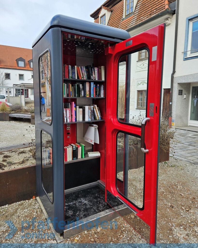 In Pfaffenhofen gibt es ab sofort einen neuen Bücherschrank: Eine ehemalige Telefonzelle wurde in der Begegnungsfläche in der Auenstraße aufgestellt und von Mitarbeitern der Stadtwerke zu einem öffentlichen Bücherschrank umfunktioniert.