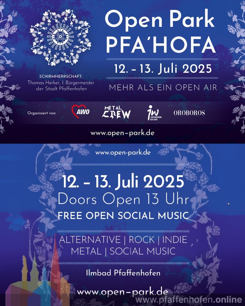 Das Open Park Festival geht in die vierte Runde: Am Wochenende vom 12. bis 13. Juli 2025 verwandelt sich das Ilmbad Pfaffenhofen (Ingolstädter Str. 72) erneut in einen lebendigen Ort der Begegnung, Kultur und Erholung. Baden, Picknicken, Musik hören und regionale Vereine kennen lernen – all das erwartet die Besucher:innen auf dem diesjährigen Pfa’Hofa: ein buntes Programm aus Musik, Tanz, Kabarett und mehr, bei regulärem Freibad-Eintritt.