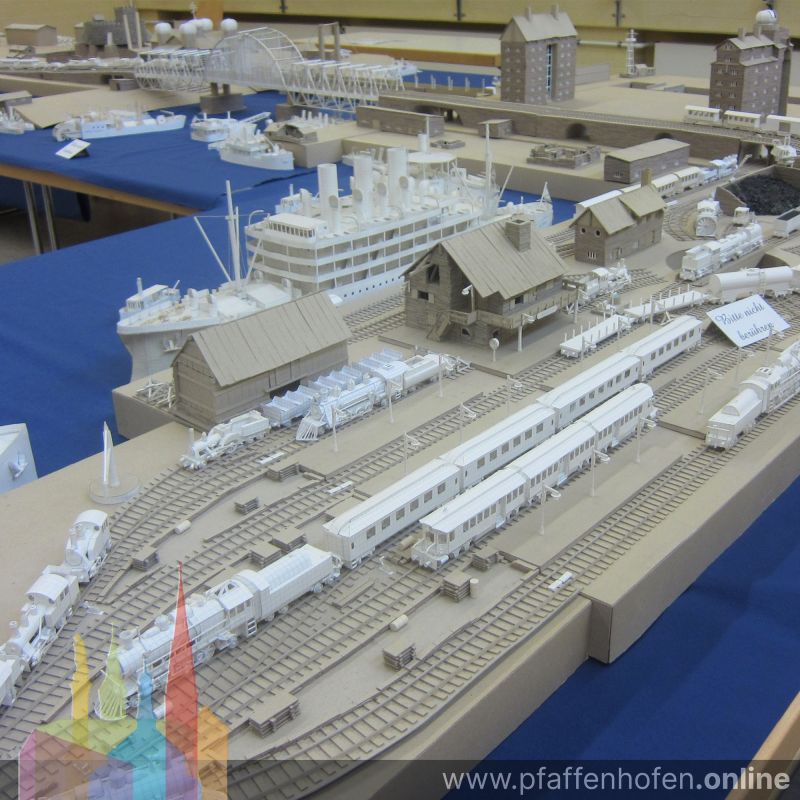 Seit 40 Jahren bastelt Oliver Stoll Modelle, die sich zu kompletten Hafen- und Eisenbahnanlagen fügen. In Größen von einem Zentimeter bis zu über 125 cm werden 230 Schiffe und 60 Lokomotiven mit 170 Wagons zu vollständigen Hafen- und Werftszenerien sowie Bahnhofsarealen aufgebaut. Ergänzt wird dies unter anderem durch Fahrzeuge, Waffen und Gebäude. So entstand eine Ausstellung mit über 200 Quadratmetern Fläche – geschaffen aus handelsüblichem, kariertem Papier.