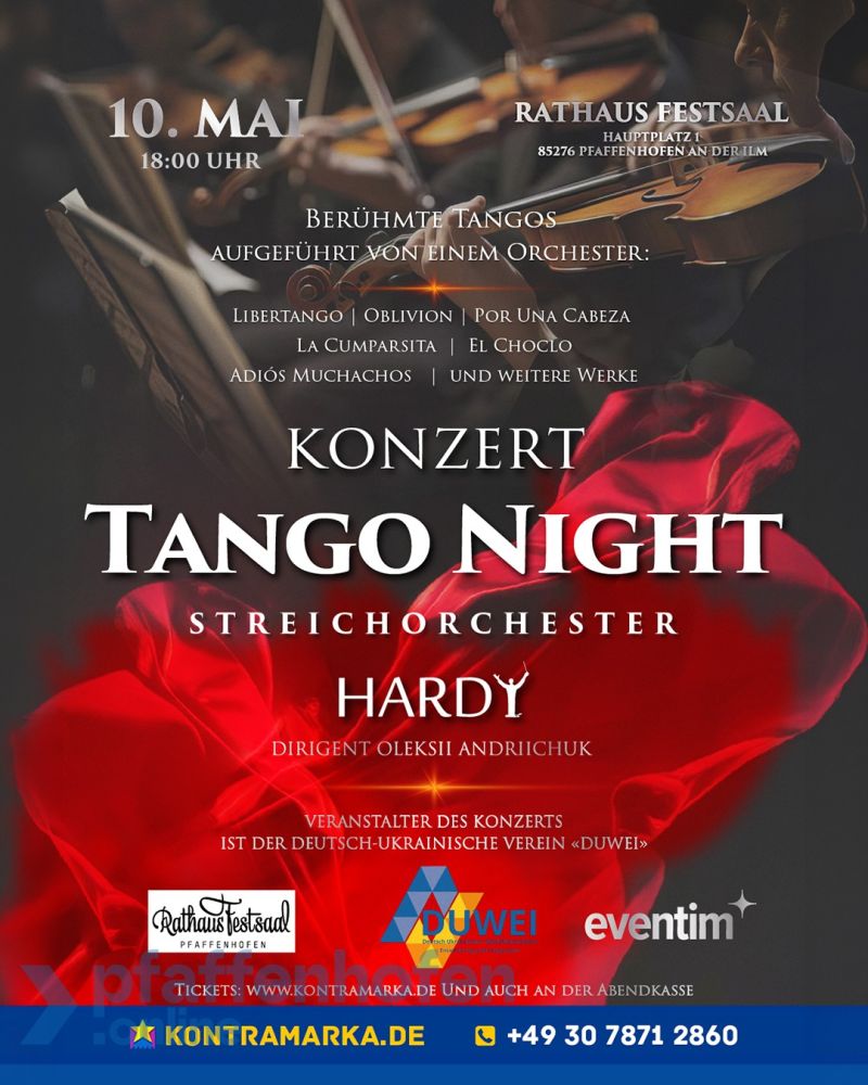 Pfaffenhofen an der Ilm darf sich auf einen besonderen Konzertabend freuen. Am 10. Mai um 18:00 Uhr lädt ein deutsch ukrainisches Orchester zur „Tango Night“ in den Festsaal des Rathauses am Hauptplatz 1 ein.